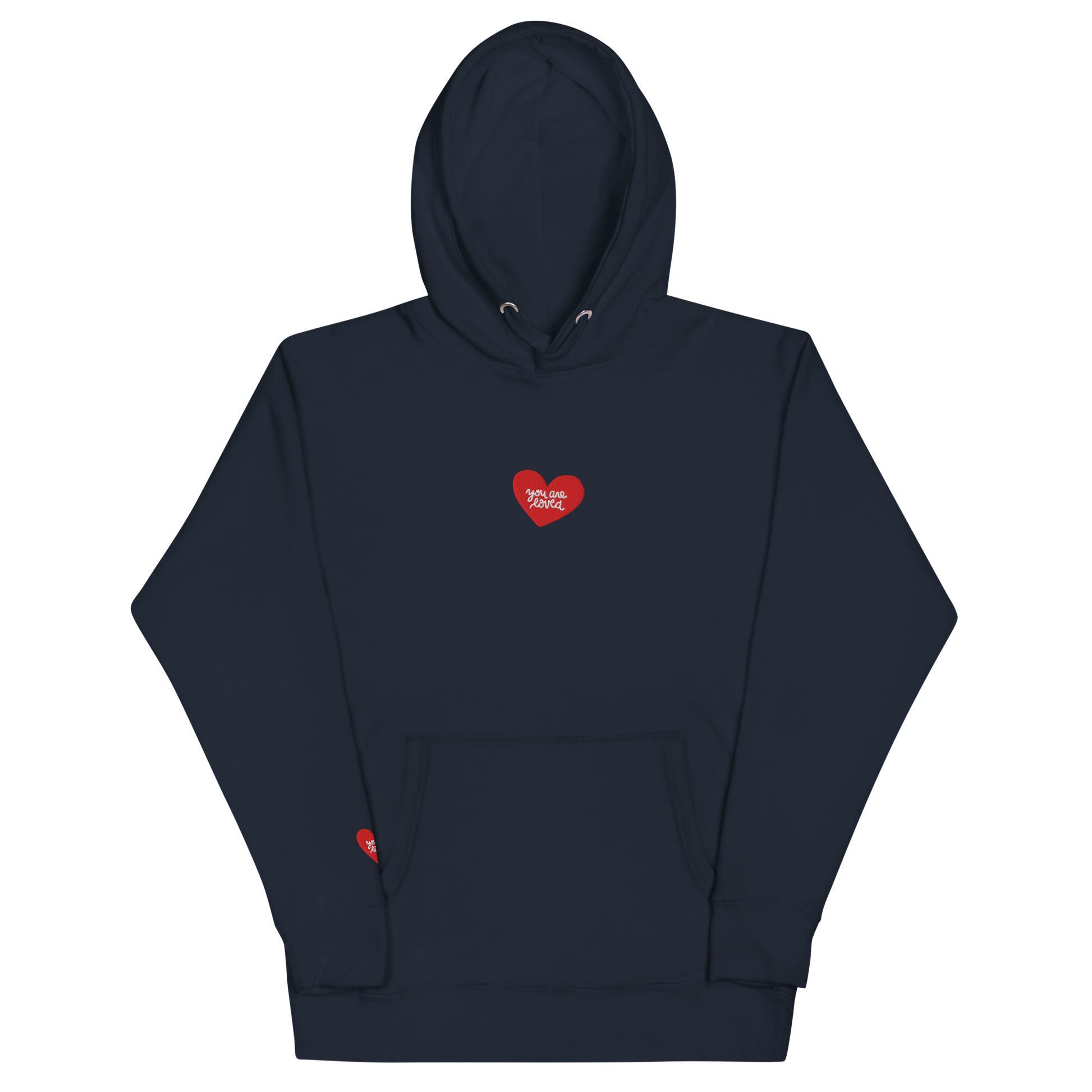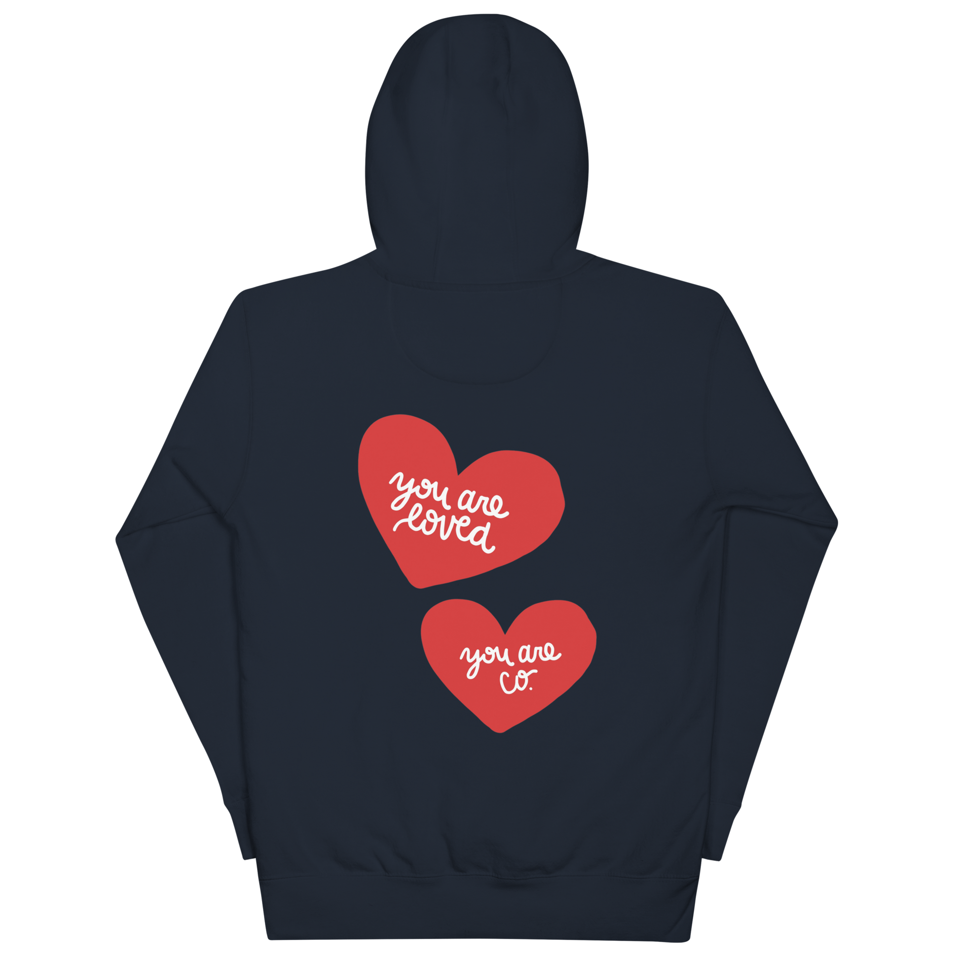 Back Design: Printed "You Are Loved" "You Are Co" Red Hearts