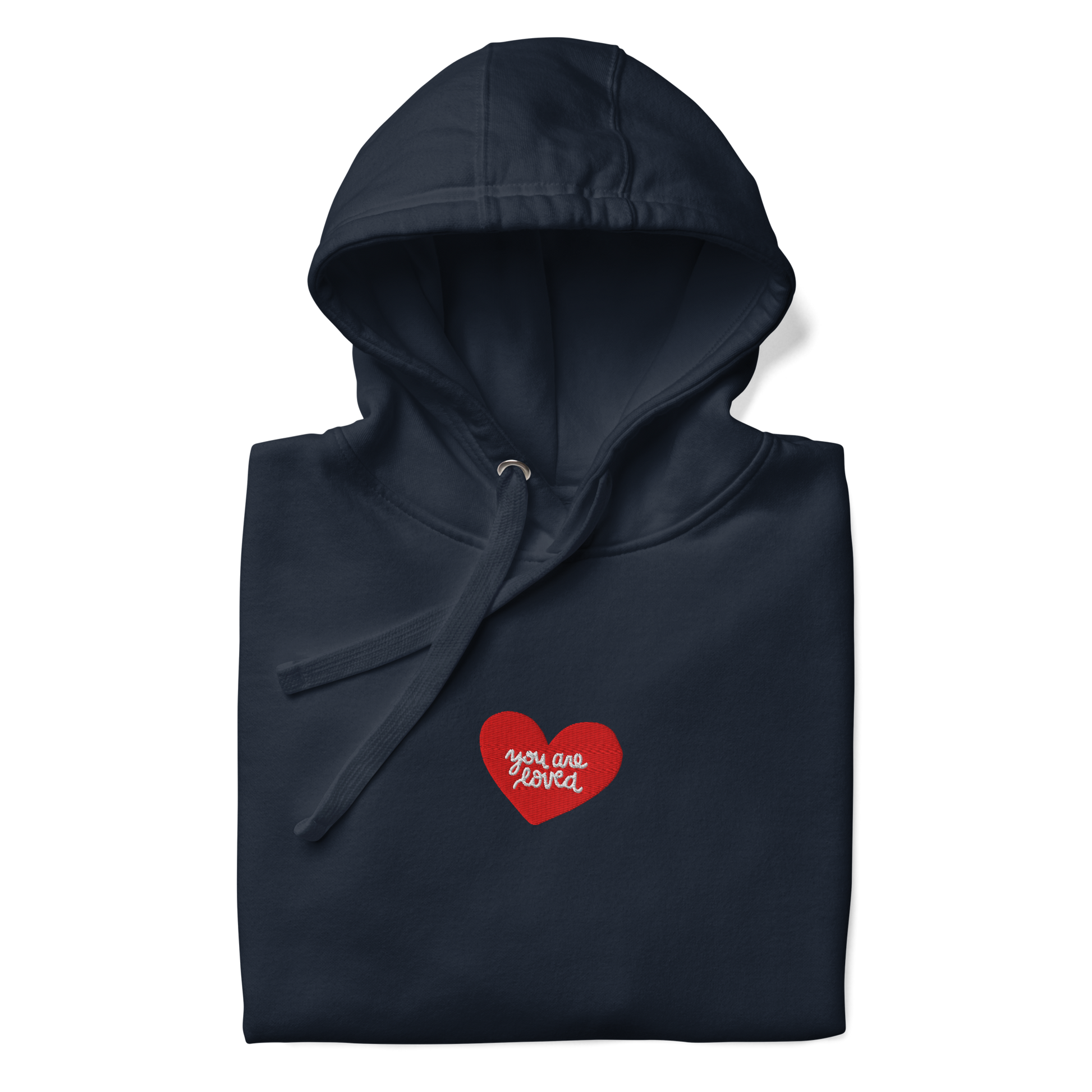 Right Wrist Design: Embroidered "You Are Loved" Red Heart