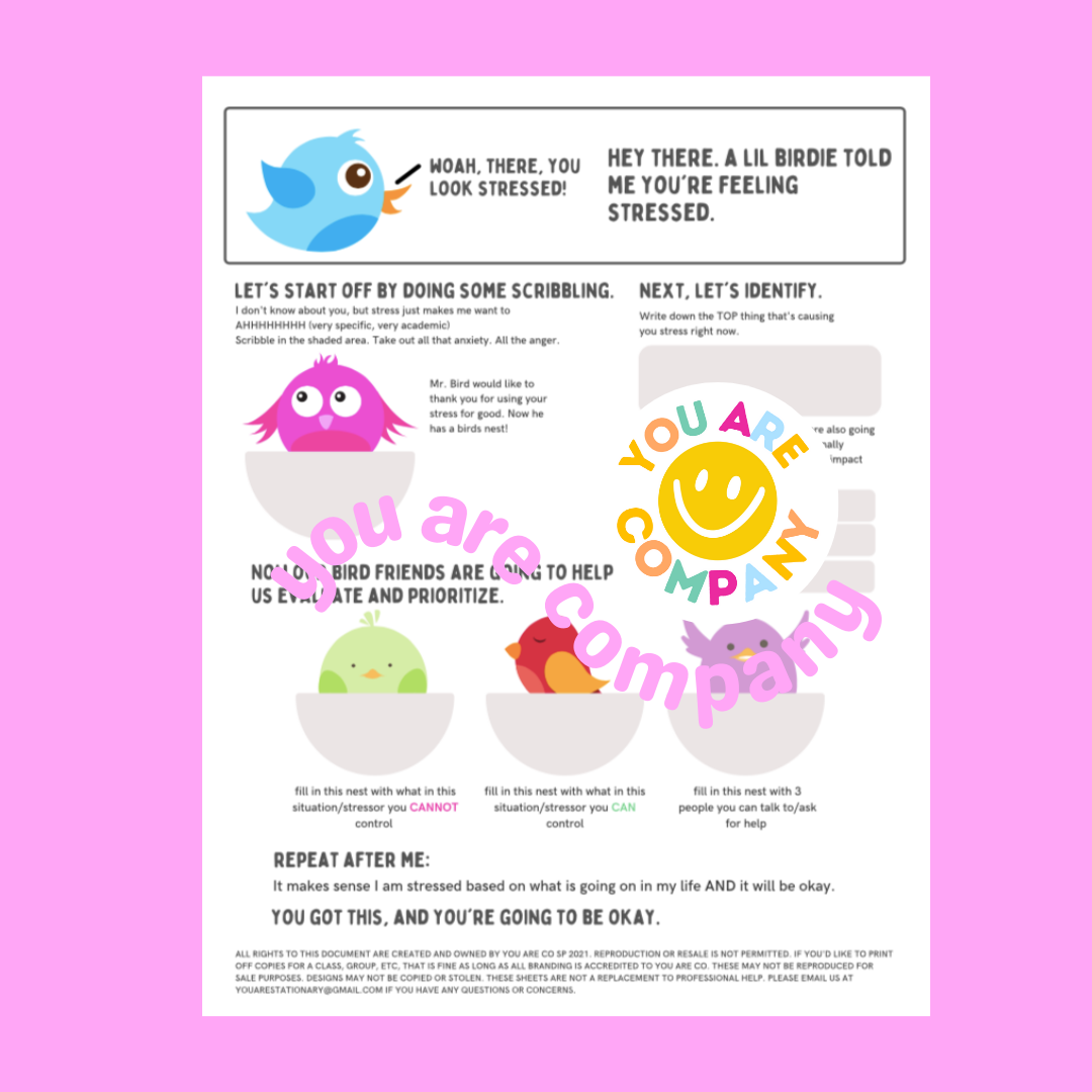 Feeling stressed? We get it. Our world is pretty stressful right now. With the help of some of our flying friends, this worksheet helps identify potential options, stressors, and reactions.