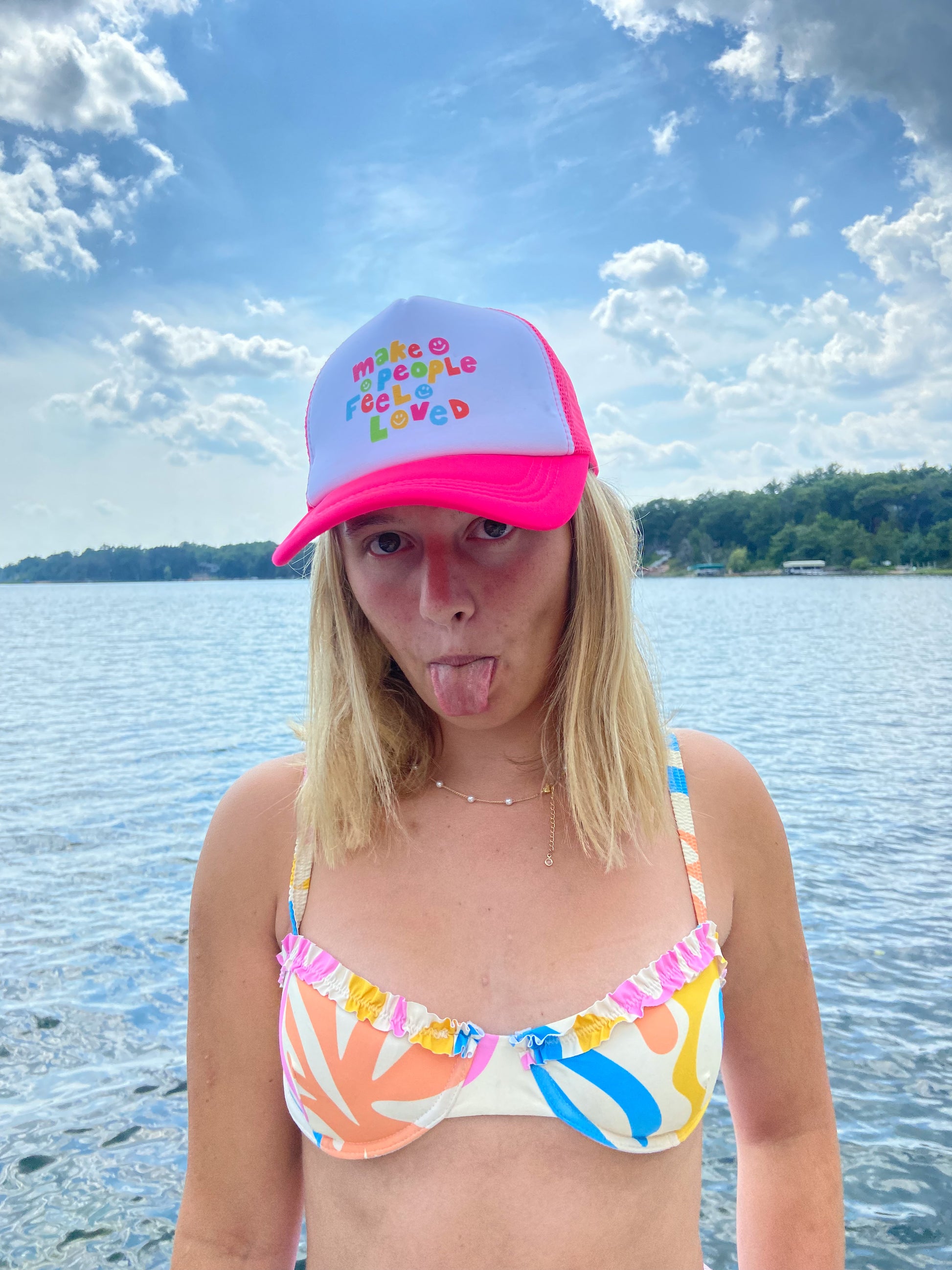 This trucker hat is not only fun, colorful, and comfy, but adjustable and practical for your boat day, picnic, or grocery shopping.