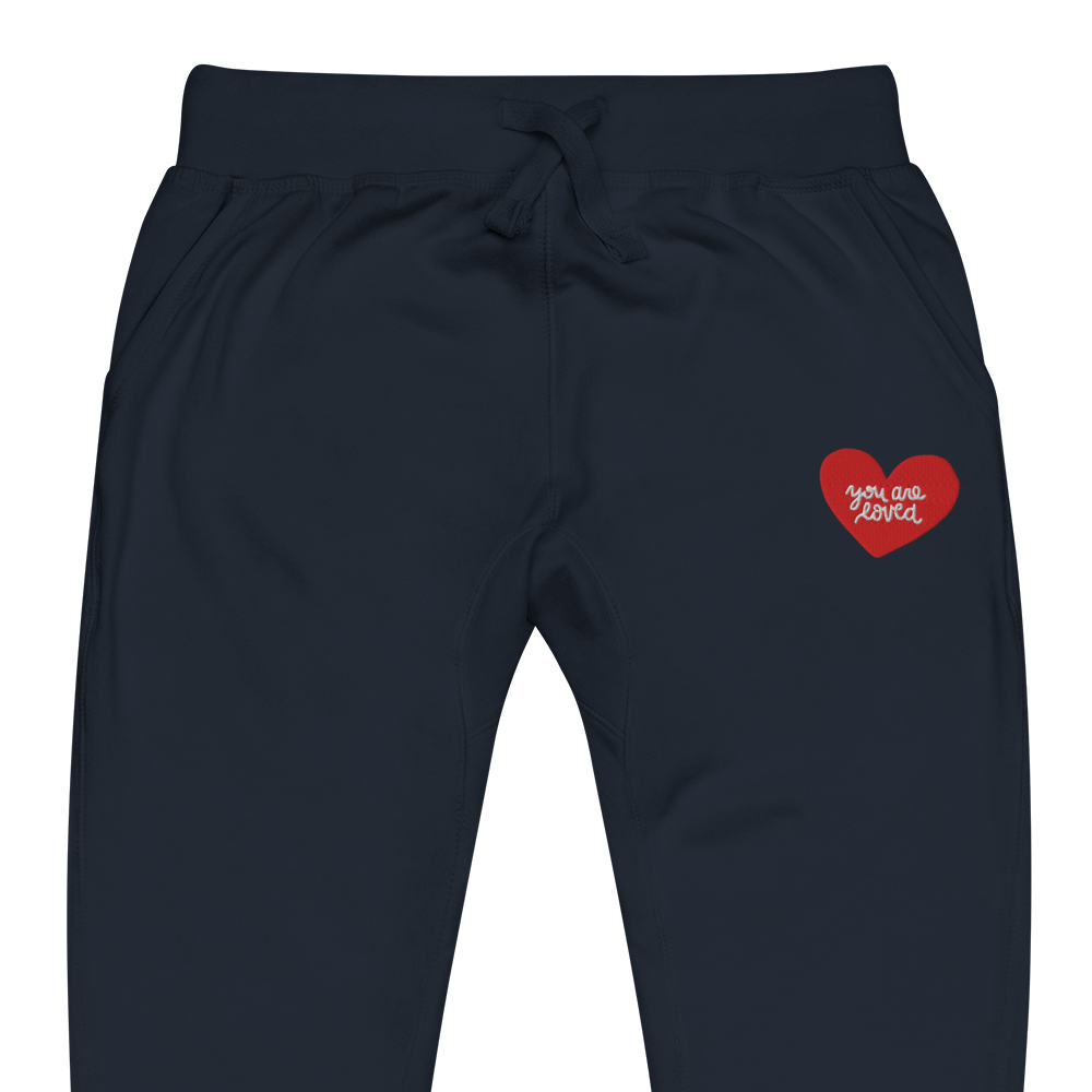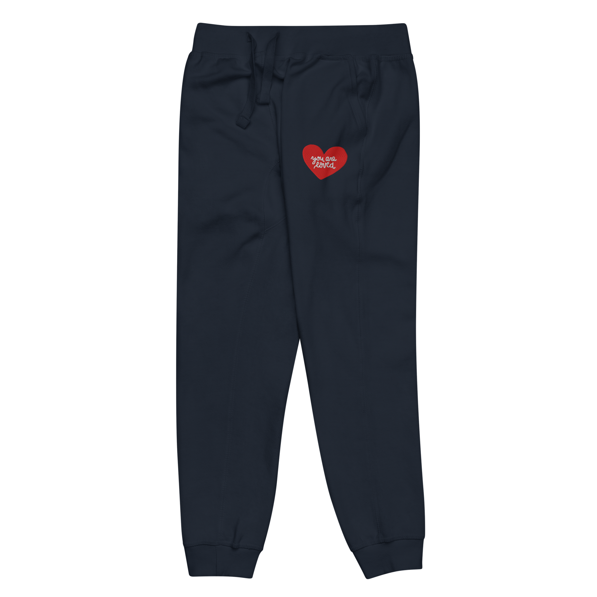 Well-made and lined with fleece, these comfortable Unisex Fleece Sweatpants will be your first choice for a casual everyday outfit—all you need to add our matching Navy Heart Sweatshirt to complete the look.