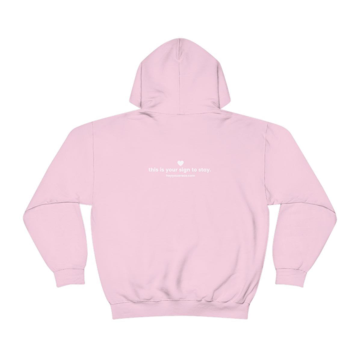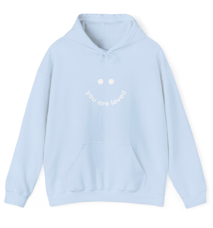 Super comfy and lightweight, this is a great hoodie for a day in or a day out. Wherever your life takes you, this hoodie is ready to go with. With our popular "You Are Loved" message in a smile, this hoodie is great to wear around town. The back says, "This is your sign to stay" which is another of our favorite messages.